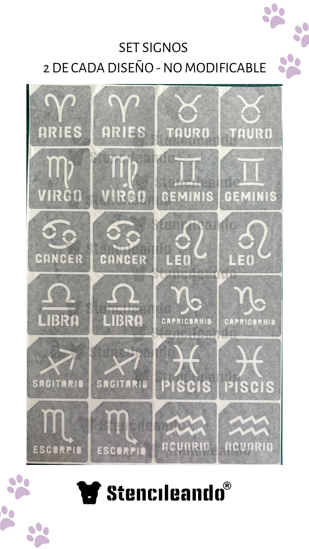 Este set trae 24 unidades de 7x7cm, son 2 stencils de cada diseño.