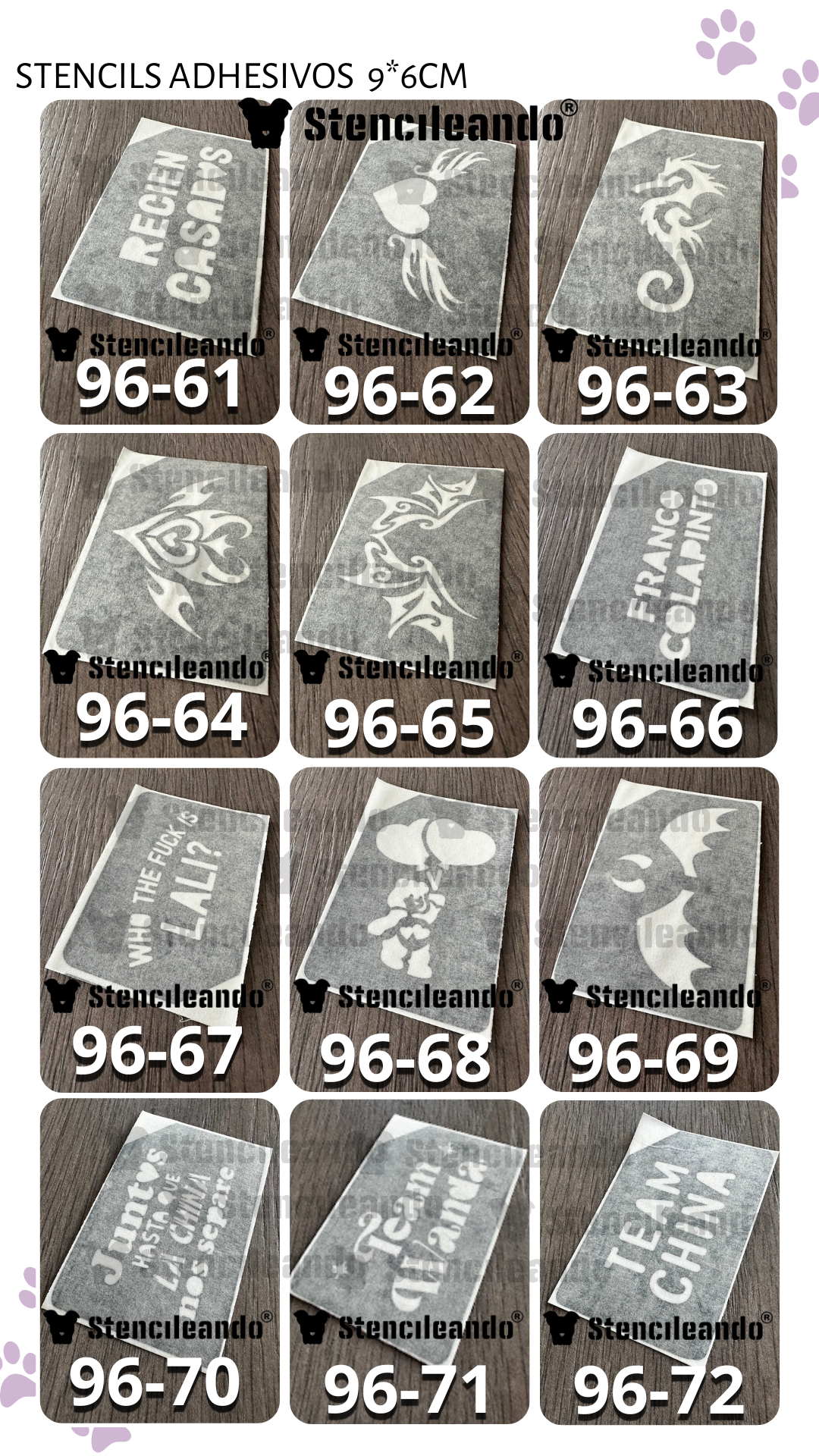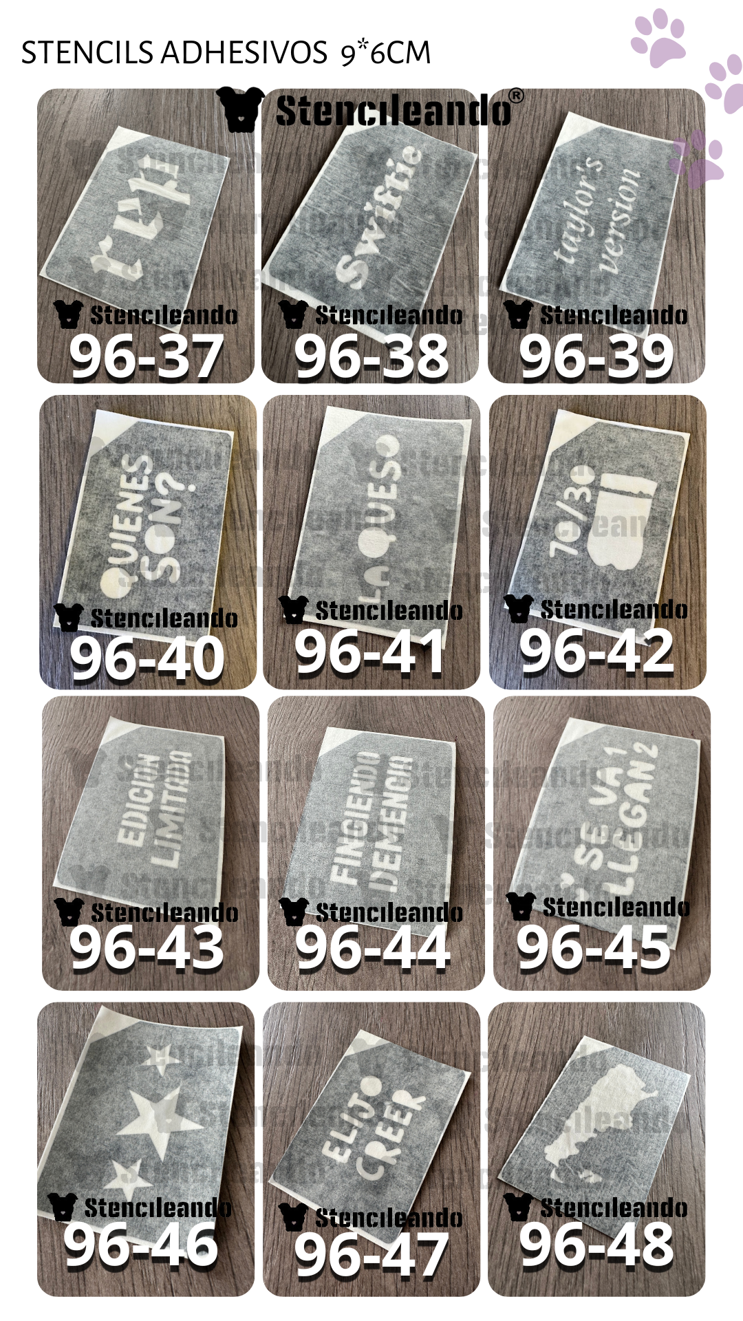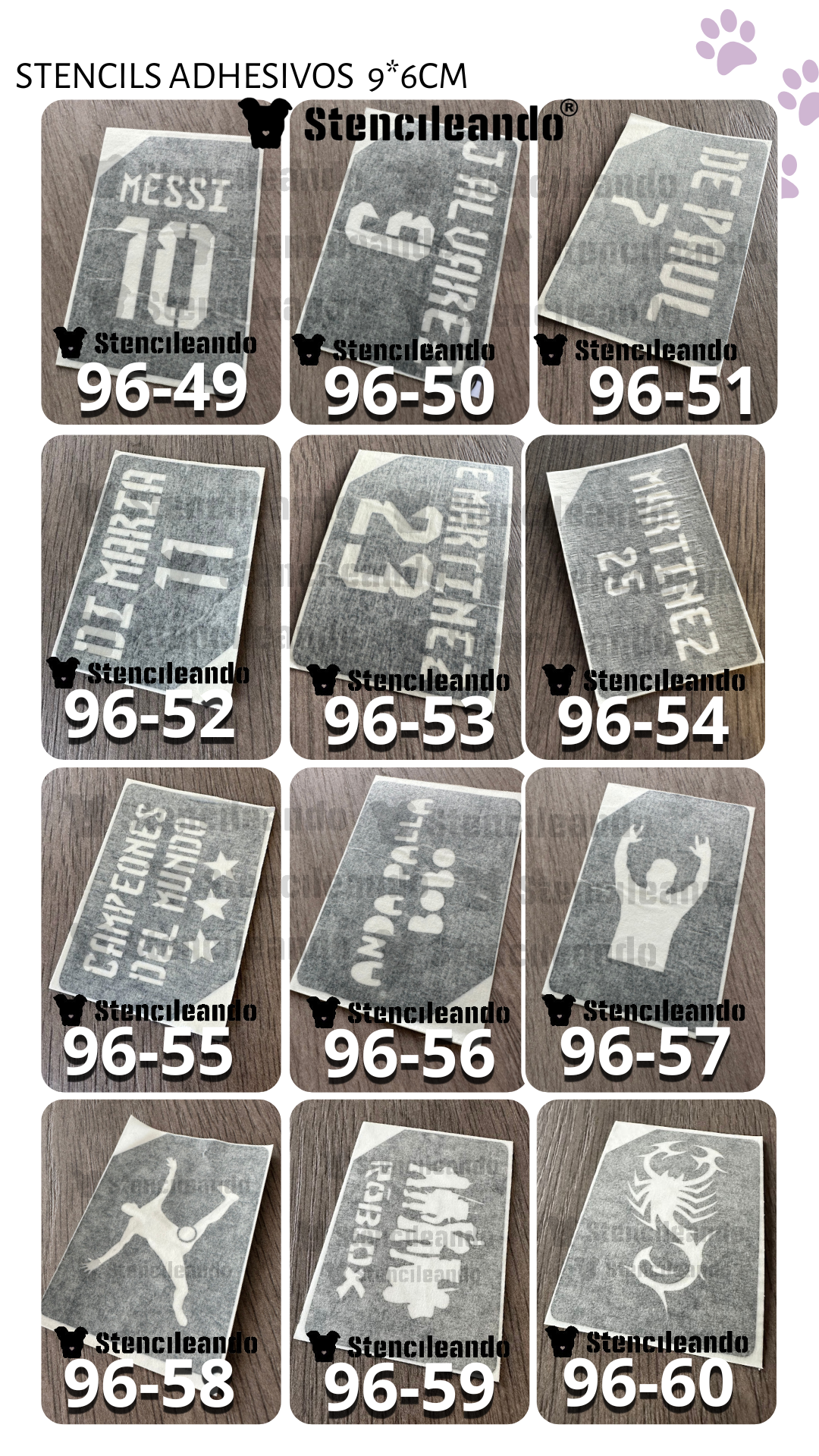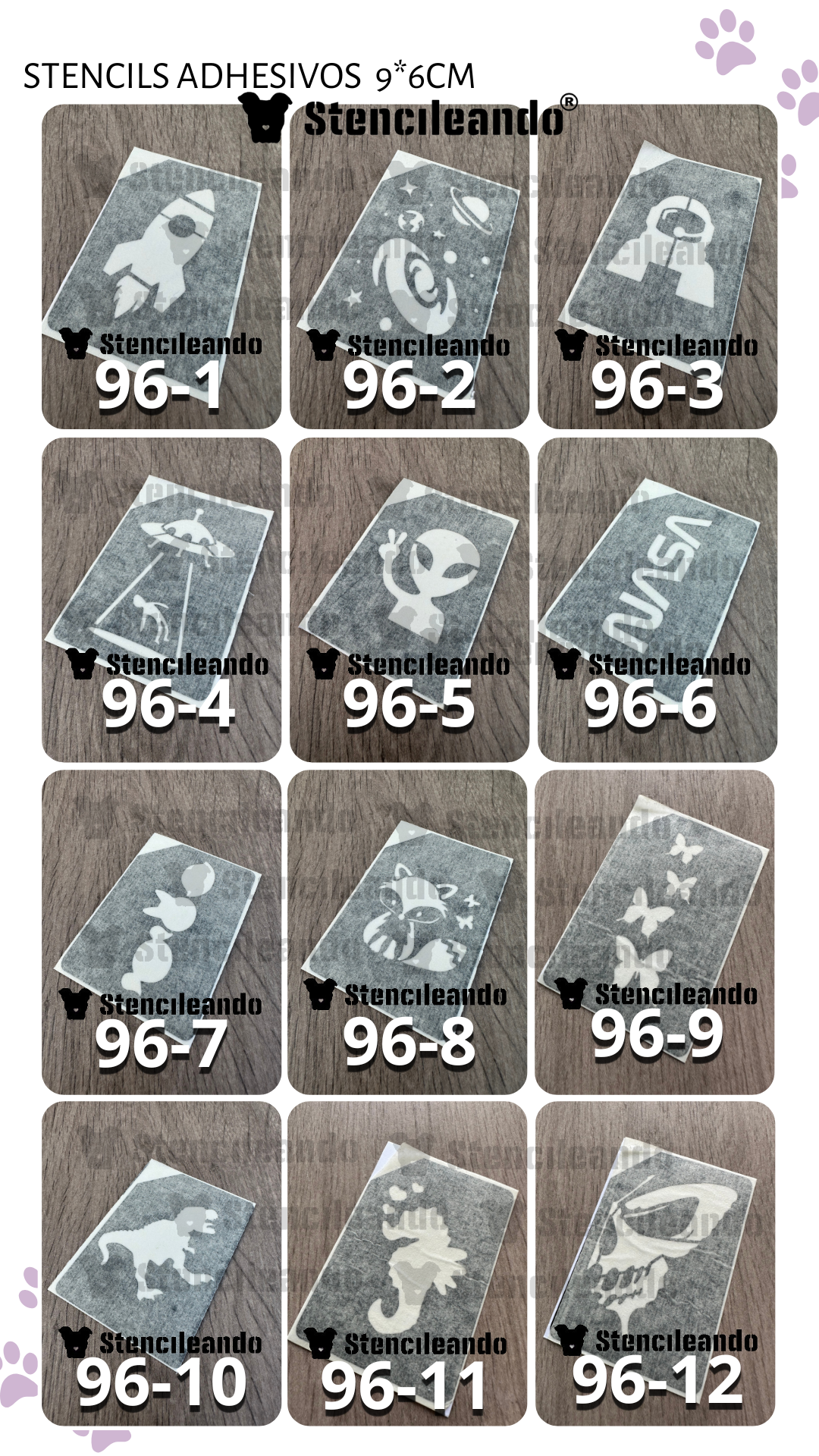 20 stencils adhesivos 9x6cm
