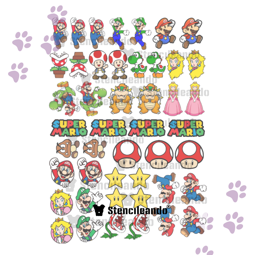 46 tatuajes de Mario, tal cual como los ves en la imagen.